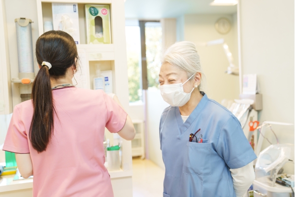 医院理念【患者さまに貢献する・職員に貢献する・地域社会に貢献する】を実践するために、歯科医師・歯科衛生士・歯科助手・歯科技工士・受付が互いに尊重し、信頼しあえる環境が大切だと考えています。そのため、働きやすい環境づくりに積極的に取り組んでおります。前向きにスキルを磨いていこうとする方、元気な方、笑顔の良い方を当医院は応援しています。